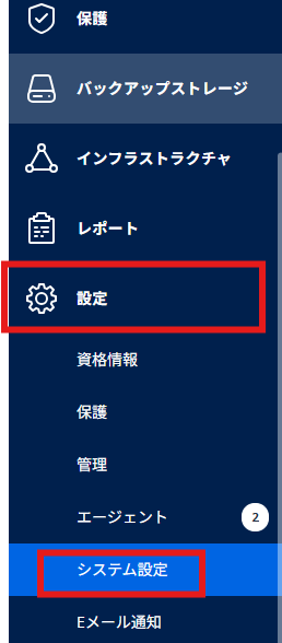 バックアップデータについては、バックアップ管理画面の「バックアップストレージ」タブより、